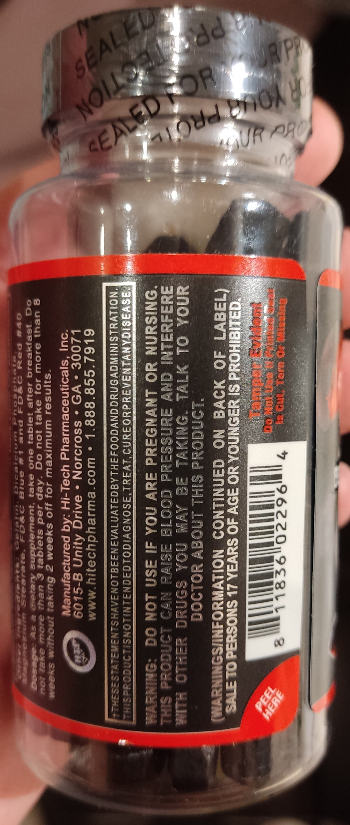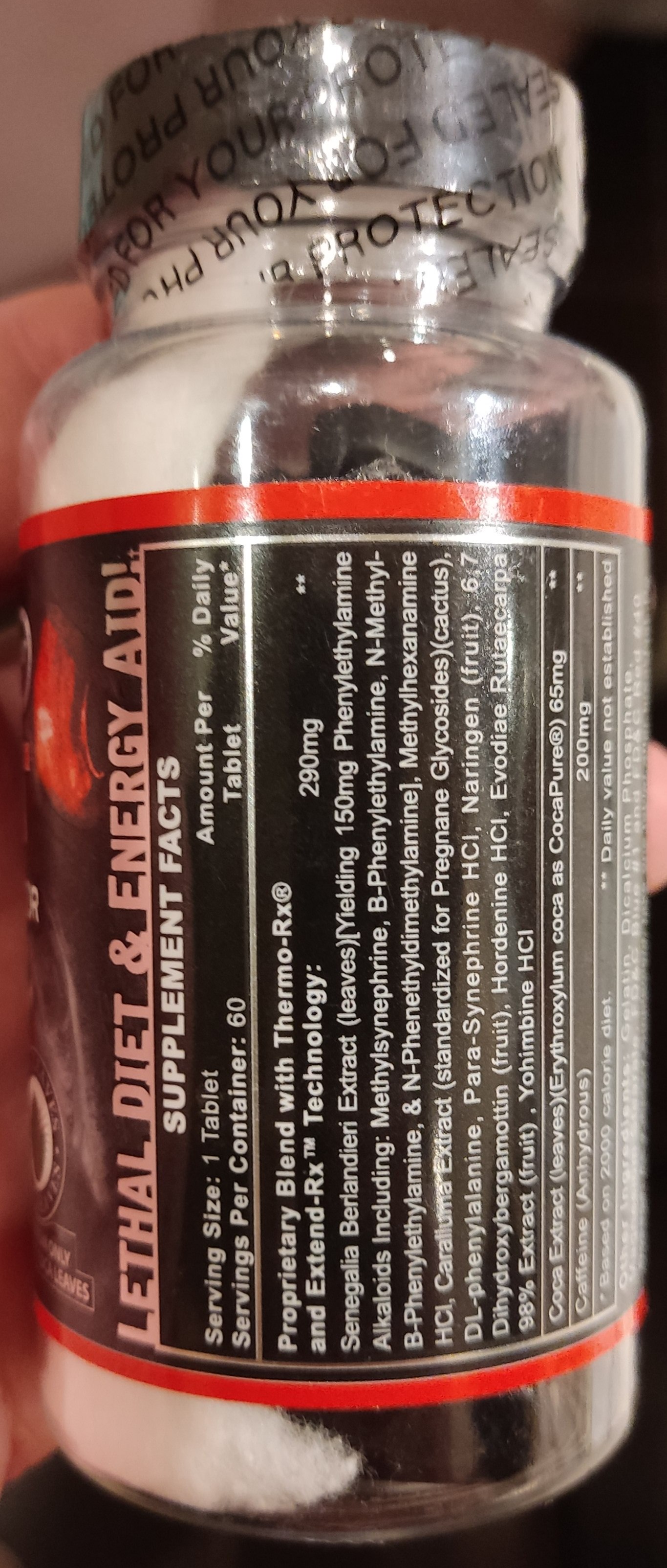 Senegalia Berlandieri Extract (leaves)[Yielding 150mg Phenylethylamine Alkaloids Including: Methylsynephrine, B-Phenylethylamine, N-Methyl-B-Phenylethylamine, & Phenethyldimethylamine], Methylhexamine HCl, Caralluma Extract (standardized for Pregnane Glycocides)(cactus), DL-phenylalanine, Para-Synephrine HCl, Naringen (fruit), 6,7 Dihydroxybergamottin (fruit), Hordenine HCl, Evodiae, Rutaecarpa 98% Extract (fruit), Yohimbe HCl